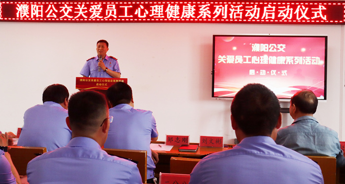 5月20日,在一年一度的“公交駕駛員關(guān)愛(ài)日”到來(lái)之際,濮陽(yáng)公交關(guān)愛(ài)員工心理健康系列活動(dòng)啟動(dòng)儀式在公司會(huì)議室舉行。公司領(lǐng)導(dǎo)班子成員和130名員工參加啟動(dòng)儀式,濮陽(yáng)市心理咨詢(xún)師協(xié)會(huì)會(huì)長(zhǎng)黃廣奇出席本次儀式,儀式由公司總經(jīng)理助理趙娜主持。